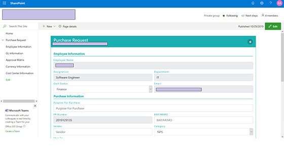 They were looking for custom application for automating “Purchase Request Process” under the SharePoint online environment using the SharePoint framework. Therefore, we made the approval process fully dynamic. The application supports web version and doesn’t have device restrictions.